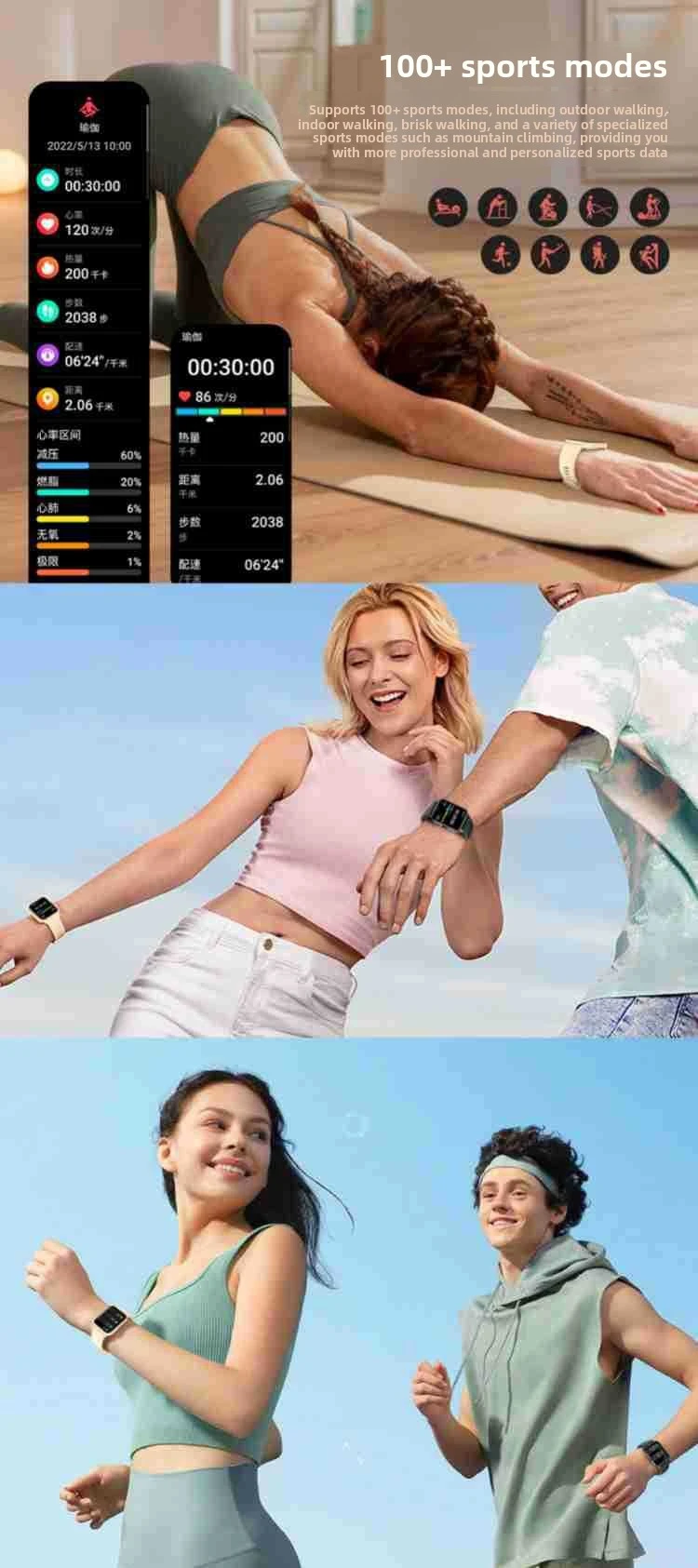 Funções: Assistente de voz com IA, Monitoramento de atividades, Despertador, Atender chamadas, Monitoramento da respiração Monitor, Bússola, Calendário, Lembrete de Chamadas, Contador de Calorias, Contagem Regressiva, Discagem de Chamadas, Monitor de Distância, Monitor de Atividades Físicas, Controle por Gestos, Monitor de Frequência Cardíaca, Lembrete de Mensagens, Medição de Umidade, Monitor de Humor, Reprodutor de Música, Tela Noctilucente, Pedômetro, Pedômetro, Reserva de Energia, Acompanhamento de Gravidez, Notificações Push, Controle Remoto, Botão SOS, Lembrete de Sedentarismo, Monitor de Sono, Notificações de Redes Sociais, Medição de Velocidade, Termômetro, Chamada de Voz, Cronômetro