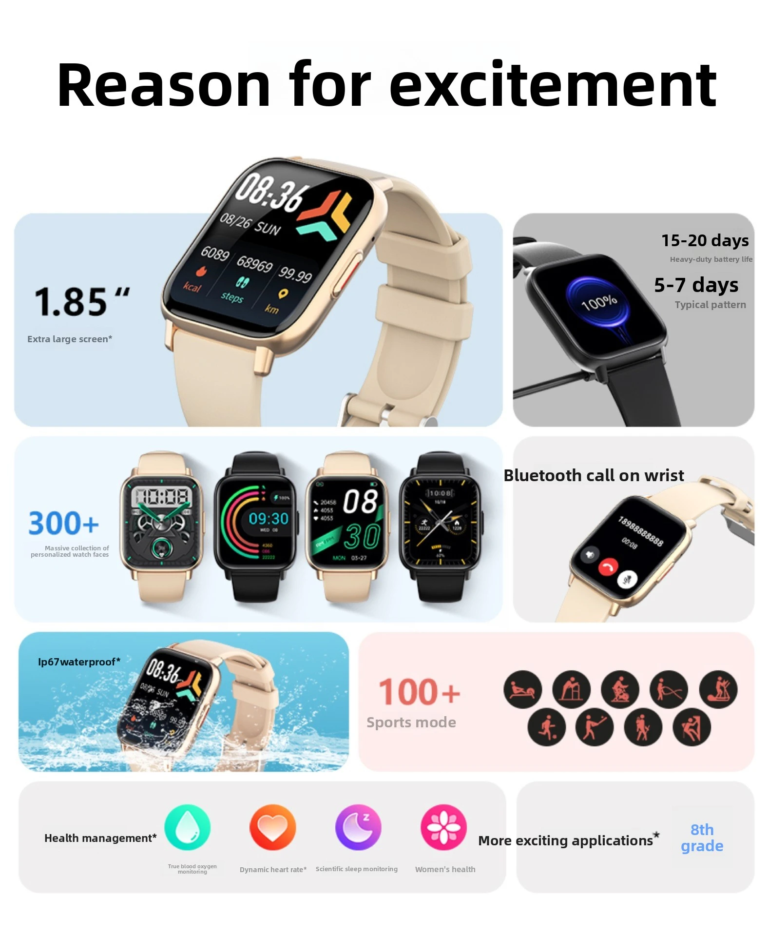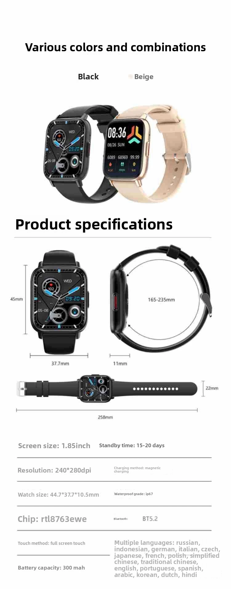DM80 Smart Watch AI Voice Assistant (IP68) Measures Body Temperature Heart Rate Blood Oxygen Sleep