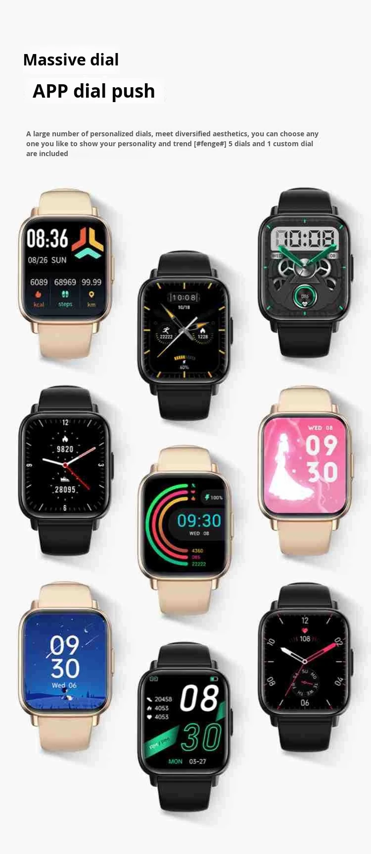 Countdown, Dial Call, Distance Tracker, Fitness Tracker, Gesture Control, Heart Rate Tracker, Message Reminder, Moisture Measurement, Mood Tracker, Music Player, Noctilucent, Passometer, Pedometer, Power Reserve, Pregnancy follow-up, Push Message, Remote Control, SOS button, Sedentary Reminder, Sleep Tracker, Social Media Notifications, Speed Measurement, THERMOMETER, Voice Call, chronograph |